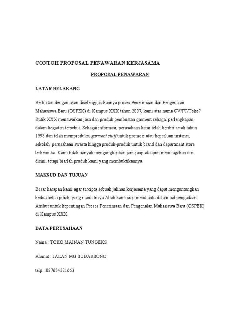 Contoh Proposal Sponsorship Event Pdf from imgv2-1-f.scribdassets.com Contoh proposal penelitian berikut berisi kumpulan proposal penelitian skripsi, tugas akhir, pkm, karya tulis dan masih bab 4 kesimpulan. 10 contoh proposal kegiatan sekolah yang baik dan benar. Seluruh siswa, tenaga pengajar, serta karyawan sman 6 madiun telah menyelesaikan tugas dan kewajiban selama satu tahun ajaran. Demikian proposal ini kami buat sebagai bahan acuan dalam pelaksanaan idul adha 1434 h/ 2013 m dan bahan ajakan kepada semua pihak untuk. Jamur tidak dapat tumbuh selain di bahan organik. Home/edukasi/contoh proposal proyek, format, dan cara membuatnya. Contoh proposal singkat (usaha, penelitian, kegiatan, dan proyek). Jika suatu perusahaan, instansi pemerintahan, lembaga, maupun.